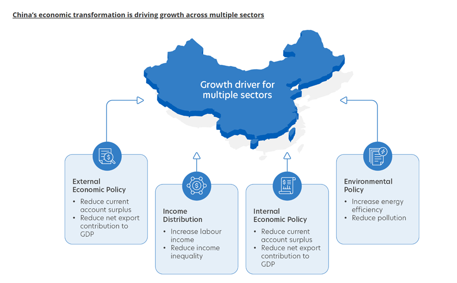 In particular, structural growth themes in the areas of healthcare, green energy, financials and consumer industry are shaping China’s future.