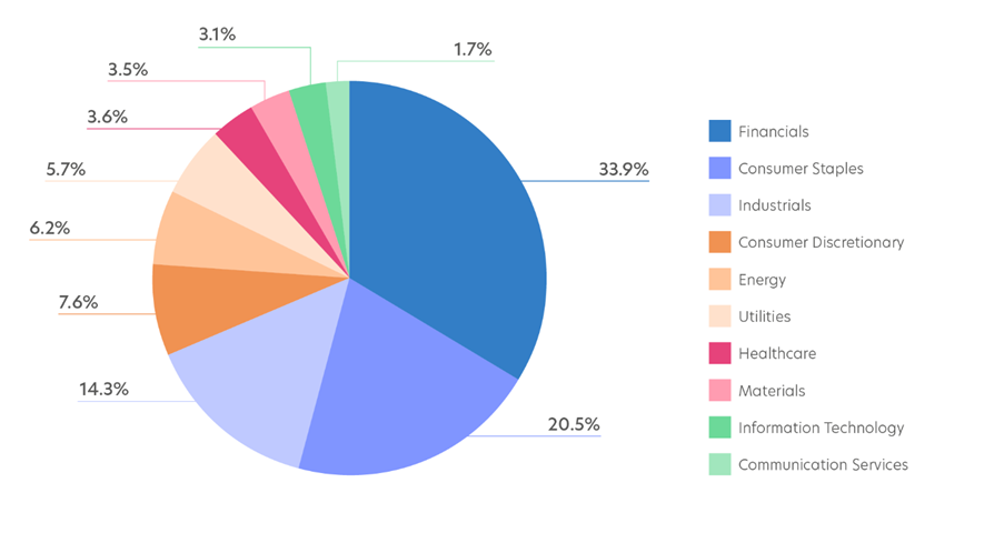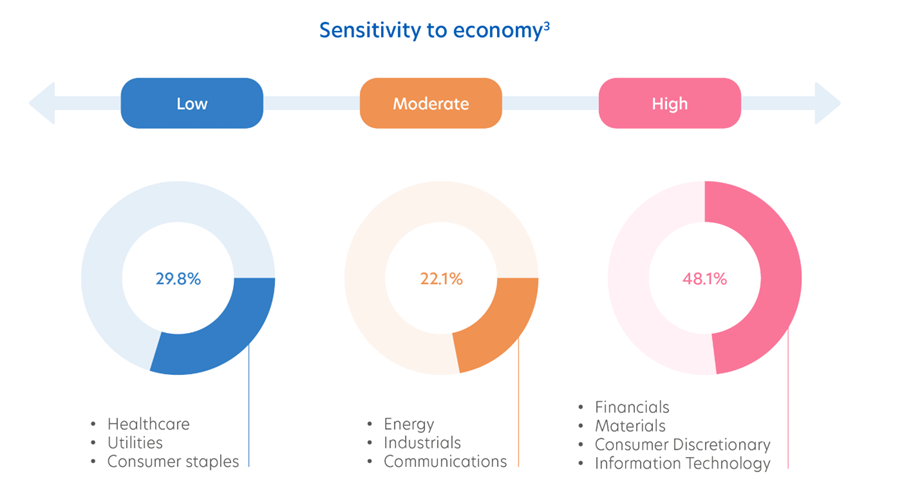 At the same time, there is exposure to the sectors like Financials, Materials, Consumer Discretionary and Information Technology that would do well if the China economy were to pick up[1].